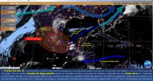 MÉRIDA, Yuc., 27 de abril 2020.- En las próximas 24 horas, se prevé cielo despejado a parcialmente nublado, con probabilidad para intervalos de chubascos, con temperaturas de calurosas a muy calurosas durante el día y cálidas al amanecer. El ingreso de aire cálido y húmedo proveniente del mar caribe hacia …