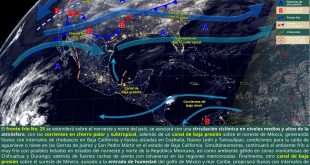 MÉRIDA, Yuc., 25 de enero 2025.- En las próximas 24 horas, se prevé cielo parcialmente nublado con lluvias aisladas. Ambiente cálido en el día y fresco a frío durante el amanecer. El ingreso de humedad estará dejando chubascos en la zona sur de Quintana Roo, lluvias aisladas en el noreste …
