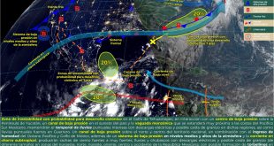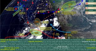 MÉRIDA, Yuc., 18 de junio 2024.- En las próximas 24 horas, se prevé cielo medio nublado a nublado con probabilidad de tormentas intensas a puntuales torrenciales. Ambiente cálido en el día y en la noche. El “Potencial Ciclón Tropical Uno” sobre la Bahía de Campeche y la humedad asociada a …