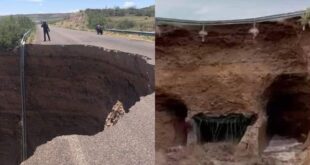 Un socavón con una profundidad de 15 metros se abrió en plena carretera de Chihuahua tras las fuertes lluvias Un nuevo socavón se ha formado, esta vez en plena carretera de Chihuahua, debido a las fuertes lluvias que en los últimos días han azotado a la región, indicaron las autoridades estatales. El enorme …