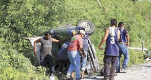 Al volcar camioneta en la carretera Tecoh-Telchaquillo Lepan, Tecoh, Yuc..- Una persona fallecida camino al hospital y tres herreros más lesionados fue el saldo de aparatosa volcadura de camioneta tras una falla mecánica, registrada a la altura del entronque de entrada a la comisaría de Lepán, en el tramo Tecoh-Telchaquillo. …