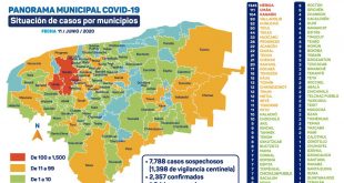 Mérida, Yucatán, 11 de junio de 2020.- Se detectaron 58 nuevos contagios de Coronavirus: 35 en Mérida, 4 en Kanasín, 3 en Tizimín, 2 en Chemax, Umán y Valladolid, 1 en Akil, Cacalchén, Hunucmá, Maní, Maxcanú, Opichén, Progreso, Samahil y Tekax, y 1 foráneo. En total, ya son 2,357 casos …