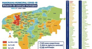 Mérida, Yucatán, 7 de junio de 2020.- Hoy se detectaron 30 nuevos contagios de Coronavirus: 22 en Mérida, 4 en Kanasín, y 1 en Kaua, Peto, Tixméhuac y Yaxcabá. En total, ya son 2,146 casos positivos, 16 de los cuales son de otro país u otro estado. Lamentablemente, en este …