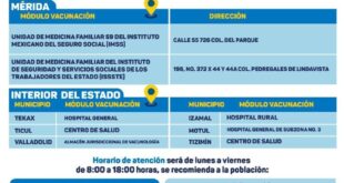 LEER MÁSAnuncian módulos permanentes de vacunación contra Covid 19 en Mérida y el interior del estado