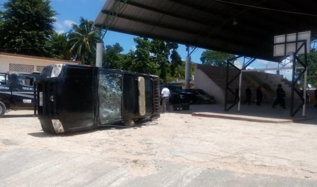 foto Yucatán Ahora Agentes lesionados, patrulla volcada y el cambio de director de la Policía Municipal Coordinada de Tzucacab fue el resultado del enfrentamiento de ayer entre policías y ciudadanos en dicho municipio. La protesta se registró la mañana de ayer, a las puertas del Ayuntamiento de Tzucacab por el …
