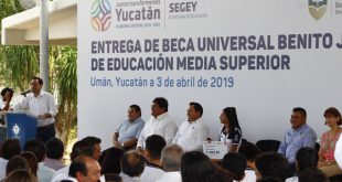 -Realizan la entrega de la beca universal Benito Juárez en el COBAY Umán Con el objetivo de garantizar el derecho a una educación incluyente, equitativa y de calidad, el presidente municipal de Umán, Freddy Ruz Guzmán acompañó al gobernador del Estado, Mauricio Vila Dosal en la entrega de Becas Universales …