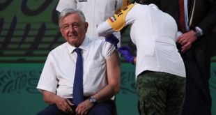 El presidente, Andrés Manuel López Obrador (AMLO), se vacunó contra el COVID-19 con una dosis de AstraZeneca, en la conferencia mañanera de hoy, 20 de abril de 2021. Una teniente enfermera del Ejército le mostró la jeringa, le levantó la manga izquierda de la camisa, le inyectó la vacuna y …