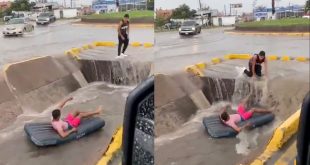 LEER MÁSHombre se avienta en un inflable por una corriente en la calle y se lo traga una coladera