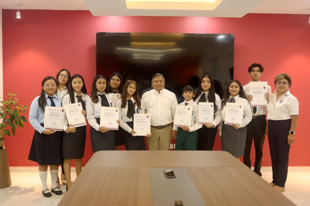 Mérida, Yucatán, a 25 de junio de 2025.- Nueve estudiantes del Centro Educativo Crismar, del municipio de Hunucmá, fueron reconocidos por sus logros sobresalientes en certámenes de debate, ciencias exactas y diplomacia académica, tanto en México como en el extranjero, durante un acto encabezado por el titular de la Secretaría de Educación del Estado de Yucatán (Segey), Juan Balam Várguez.