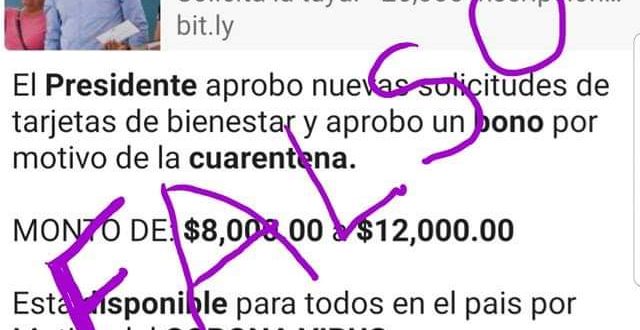 Ciudad de México, a 31 de marzo de 2020. – La Secretaría de Bienestar hace un atento llamado a la población para que tenga cuidado con un anuncio que circula en redes sociales en el que se ofrece un supuesto apoyo para tramitar la Tarjeta para el Bienestar, que además remite a un sitio que no corresponde a ningún de los portales oficiales del Gobierno de México.