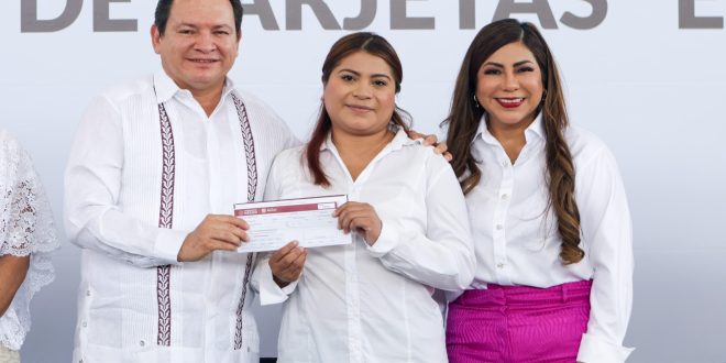 Entre las mujeres que recibieron su tarjeta “Elvia Carrillo Puerto” se encuentra Erika Beatriz Uc Kú, quien agradeció al Gobernador por este apoyo que representa un alivio, ya que le permitirá cubrir la alimentación y otros gastos de su familia, conformada por ella y su hijo.