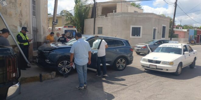 Taxista provoca fuerte accidente en el centro de Mérida