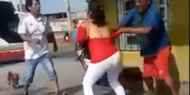 “¿Por qué te metes con mi mujer?”, gritó el esposo, segundos antes de golpear al amante mientras éste intenta defenderse.