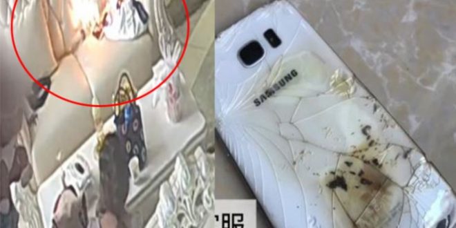 Las imágenes captadas por una cámara de vigilanciamuestran cómo de repente el teléfono se convierte en una bola de fuego.