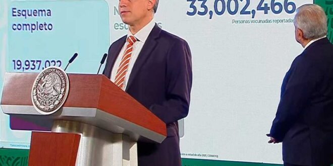 Explicó que al momento se han aplicado 33 millones 2 mil 266 dosis contra SARS-CoV-2, de los cuales 19 millones 937 mil 022 son esquemas completos y el resto, 13 millones 085 mil 444 aún tiene una sola dosis.