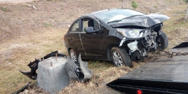 Al llegar a la altura del kilómetro 29, antes de subir al puente de Temozón, el guiador perdió el control del volante lo que ocasionó que el auto se saliera de la carretera, cayendo a la hondonada e impactándose contra la base de un poste de alumbrado público.