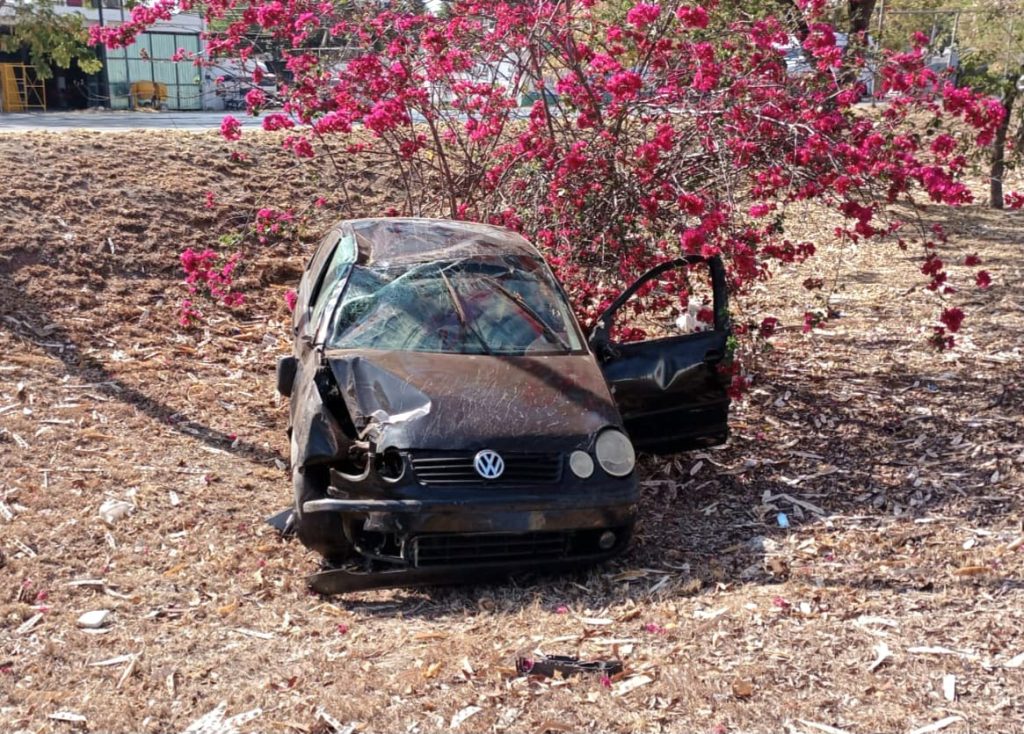 Mérida, Yuc., a 20 de abril 2024.- Una aparatosa volcadura tuvo lugar en el kilómetro 19 del periférico oriente de esta ciudad, cuando un joven conductor en estado alcoholizado perdió el control de su vehículo Bora y terminó accidentado en una hondonada.
