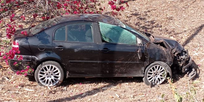 Mérida, Yuc., a 20 de abril 2024.- Una aparatosa volcadura tuvo lugar en el kilómetro 19 del periférico oriente de esta ciudad, cuando un joven conductor en estado alcoholizado perdió el control de su vehículo Bora y terminó accidentado en una hondonada.