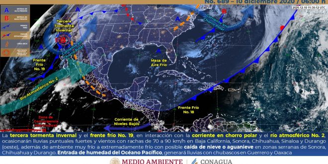 El dominio del extenso anticiclón sobre el golfo de México y la península de Yucatán, mantendrá condiciones estables sobre los tres estados de la región con mayores periodos de sol, por lo que la probabilidad de lluvia será escasa. En tanto que las temperaturas se mantendrán cálidas durante el día, mientras que durante la madrugada y al amanecer, los valores de temperatura oscilarán en rangos de frescas a templadas especialmente en sectores del noreste y oriente de Campeche, centro- sur de Quintana Roo, así como en el cono sur y oriente de Yucatán (en este ultimo es probable que se presenten valores puntuales menores a 10°C), con vientos dominantes del este-noreste de 15 a 25 km/h y rachas de hasta 40 km/h en zonas costeras.