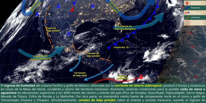 La masa de aire frío asociada al paso del frente núm. 15 se cubrirá la península de Yucatán, dejando lluvias aisladas en el noroeste, centro y noreste de Yucatán,