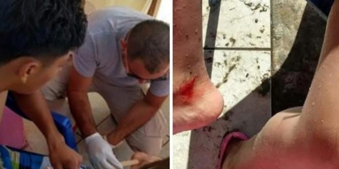 Con piernas y pies sangrando salieron del agua para pedir auxilio. Paramédicos de la Cruz Roja atendieron a los heridos.