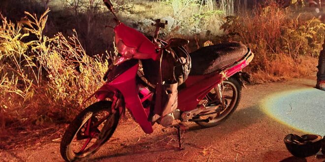 Kinchil, Yuc., a 17 de mayo 2022.- Por otra parte, 3 kilómetros antes, es decir en el ‘kilo’ 31 del citado tramo federal (Kinchil-Celestún) un par de cuates que venían a bordo de una motocicleta, luego de laborar en el municipio costero sufrieron una derrapada en los matorrales y todo por culpa de una piedra.