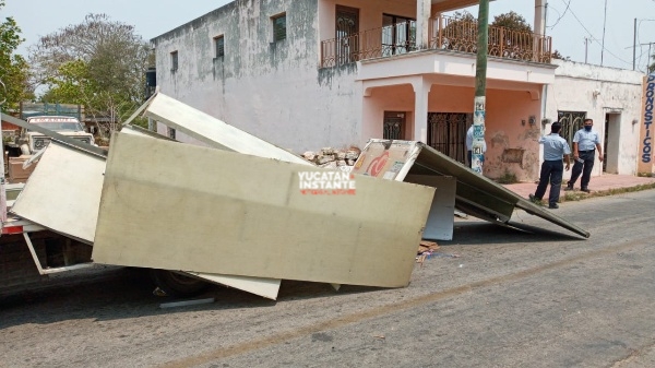 Tetiz, Yuc., 23 de abril 2020.- Literal partido como una galleta acabó la caja de un vehículo de Gamesa, tras perder el control el operador para colisionar con un poste de Telmex de la calle 20 entre 21 y 23 del centro de este municipio. Ciudadanos no realizan rapiña.