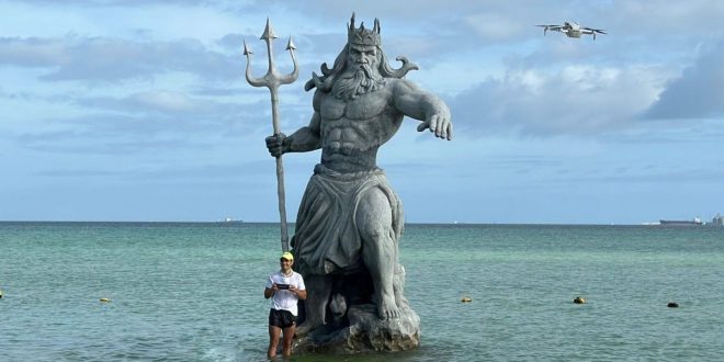 PROGRESO, Yuc., 09 de septiembre 2024.- En una impresionante muestra de dedicación y espíritu deportivo, Thiago Rubio, joven yucateco de 37 años, recorrió los 42 km partiendo desde la icónica estatua del Dios Chaac en el puerto Telchac hasta llegar a la figura de Poseidón en la costa de Progreso.