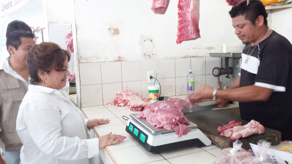 La abanderada blanquiazul, saludó a locatarios y compradores que se encontraban en el recinto, donde les explicó parte de las propuestas que irá presentando en los próximos días.