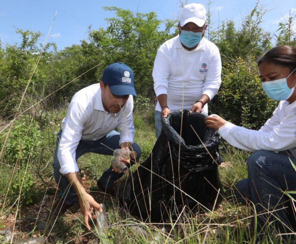 Posteriormente, en Sacalum, el Gobernador y el alcalde Luis Nájera Vázquez supervisaron y, también, se sumaron a las tareas de limpieza, en los tramos carreteros que conectan con Plan Chac y Mucuyché, donde participaron más de 65 voluntarios con la recoja de basura, entre envases de plástico, cristal y colillas de cigarros.