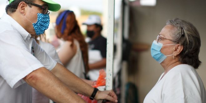 MÉRIDA, Yuc., 22 de abril 2021.- El candidato a la alcaldía de Mérida por el PRI-PRD, Jorge Carlos Ramírez Marín realizó una camita en el barrio que vio nacer su vida política: Francisco de Montejo.