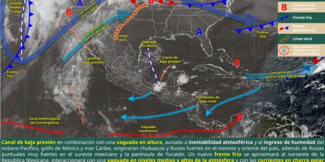 • 🌧️ Yucatán: Chubascos con tormentas localmente fuertes, especialmente en el oriente, noroeste, centro y sur del estado.