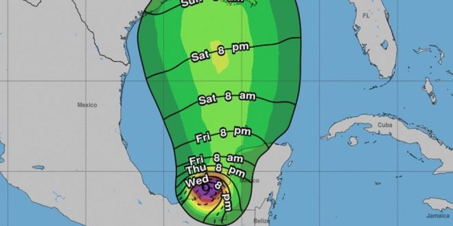 De igual forma prevé fuertes lluvias con acumulaciones de entre 25 y 50 centímetros en El Salvador, Belice, Honduras y México, en este último en los estados de Campeche, Chiapas, Quintana Roo y Tabasco.