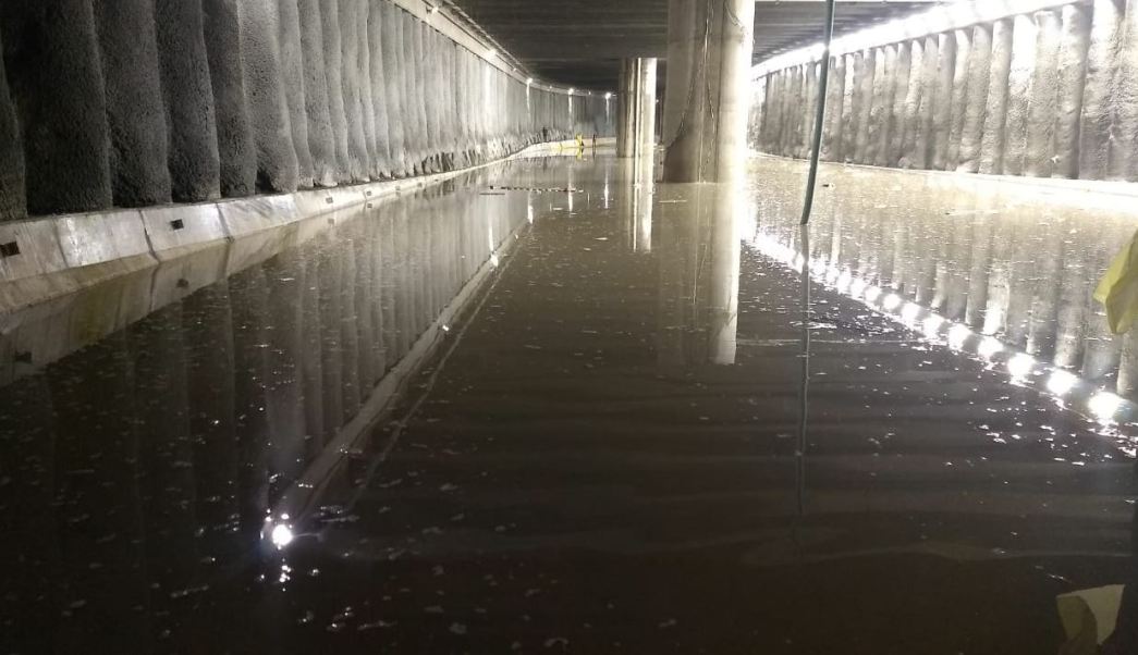 El paso a desnivel de la avenida Ávila Camacho fue cerrado en ambos sentidos por inundación.