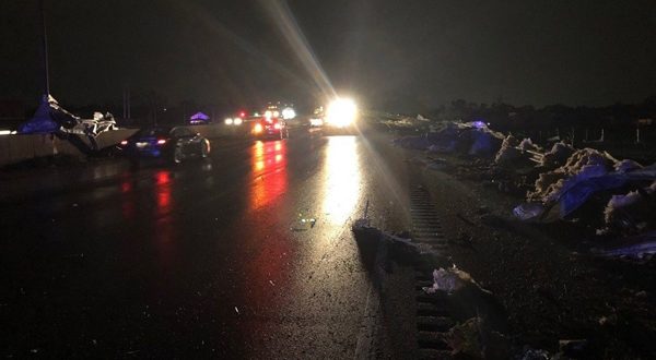 Las tormentas dejaron tal cantidad de escombros que en el personal de mantenimiento de autopistas tuvo que utilizar topadoras para despejar una interestatal.