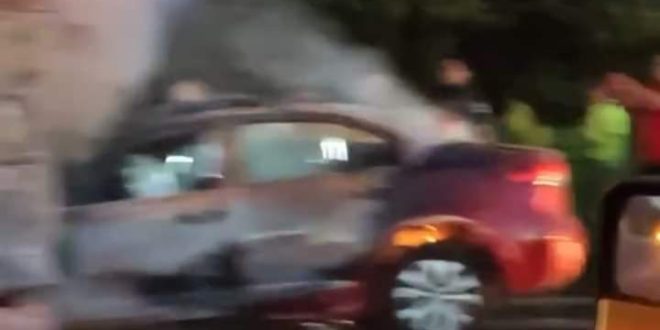 Debido al fuerte impacto rápidamente el auto se incendió al igual que el camión, falleciendo calcinado el conductor del compacto.