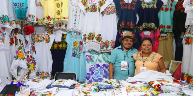 Entre los 150 stands que conforman la muestra, abierta hasta el domingo 21 de mayo, también se encuentra el de Deysi Chan Naal, artesana del ramo textil, quien aprendió a bordar con la técnica de punto de cruz desde los ocho años.