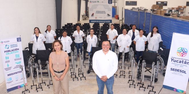MÉRIDA, Yuc., 15 de mayo 2023.- Gracias a una alianza de la Beneficencia Pública y el programa Médico a Domicilio de la Secretaría de Desarrollo Social, poco más de cien personas de 51 municipios recibirán en sus domicilios un total de 66 sillas de ruedas y 36 bastones que les permitirán atender sus necesidades de movilidad, detectadas por los doctores que atienden a este sector de la población en sus propias casas.