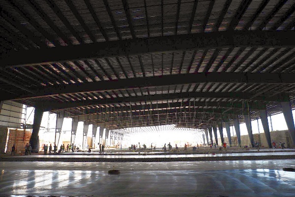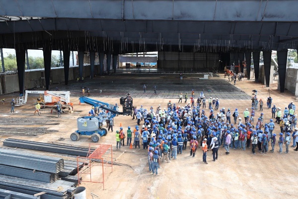 Durante la visita de supervisión, el Gobernador constató las labores de expansión que se están efectuando en el área de exposiciones para alcanzar 11,000 metros cuadrados (m2), las cuales llevan un importante avance, pues prácticamente ya cuenta con toda la estructura metálica instalada y se está trabajando en el armado y colado del piso de concreto de esta nueva nave.