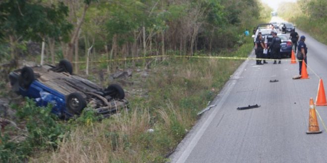 Kantunilkín (Infoqroo).— Dos personas murieron y otra resultó herida de gravedad en un accidente de tránsito la mañana de ayer en el tramo carretero Ideal-Nuevo Xcan.