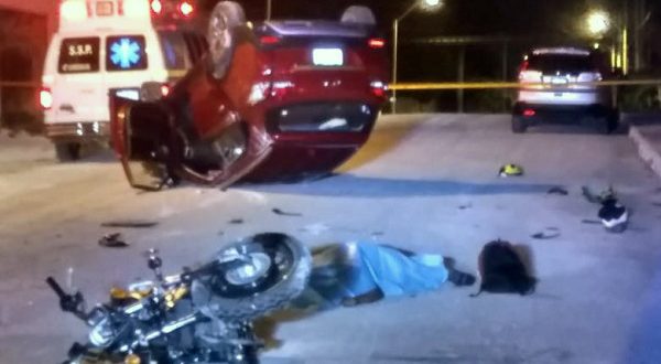 MÉRIDA, Yuc., 17 de diciembre de 2019.- Un joven motociclista perdió la vida de manera instantánea, luego de volarse el disco de alto y ser impactado por un vehículo que tras el golpe terminó con las cuatro llantas arriba.