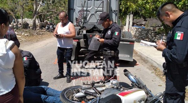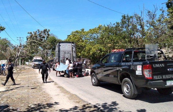 UMÁN, Yuc., 03 de marzo 2020.- El lamentable accidente ocurrió alrededor del mediodía, cuando José Carmen F. H. de 46 años de edad originario de la ciudad de Nuevo León operaba el tractocamión Freightliner con matrícula 86 AG 1R sobre la carretera de esta población que enlaza a la comunidad de Texán Palomeque.