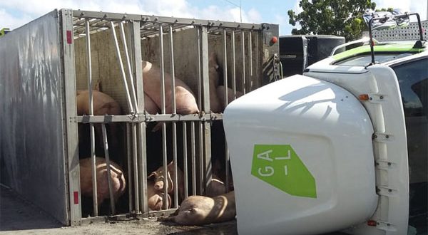 Home / Destacada policía / Trágica volcadura para cerdos, fallecen más de 50