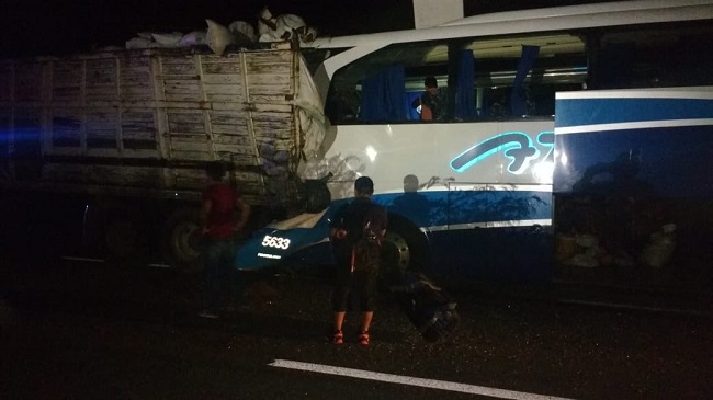 Los hechos se suscitaron en el km 147 de la citada brecha, donde según se averiguó el camión de pasaje venía procedente de Tenosique, Tabasco.