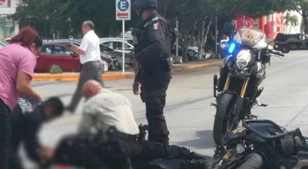 De acuerdo con información proporcionada por el repartidor de comida, circulaban por la calle 19 de la colonia México sobre Prolongación Montejo, ambos se encontraban esperando que se ponga en verde el semáforo, acto seguido al indicar el paso el semáforo el agente de la SSP motorizado avanzó, pero un automóvil Spark cruzó en rojo y los arrolló, en primera instancia al oficial y posteriormente al repartidor que resultó con heridas leves.