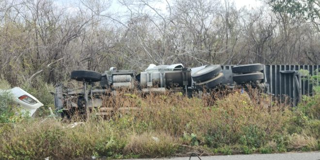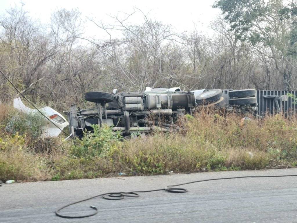 MÉRIDA, Yuc., a 27 de marzo 2024.- Felipe Rosales de 30 años de edad, resultó lesionado luego de que el tráiler que conducía volcó en la vía federal Mérida-Tetiz.