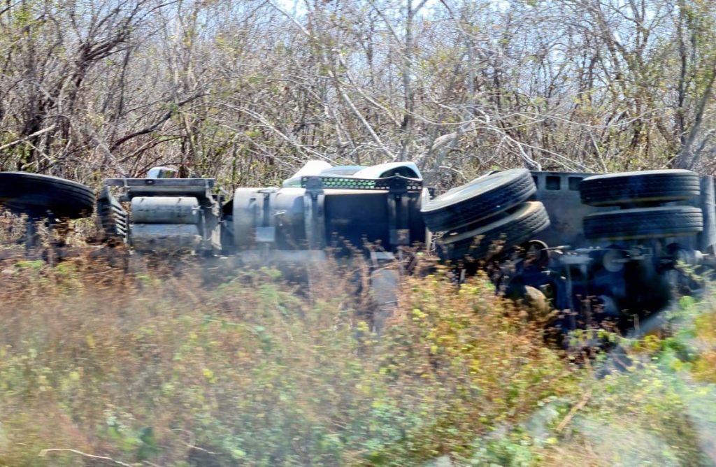 La unidad que trasnportaba cientos de cajas de blanquillos se salió de la vía y terminó volcada sobre su costado derecho dentro del monte y en una hondonada.