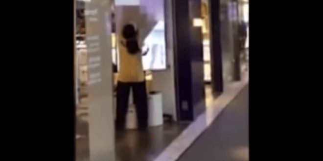 Al percatarse de lo que ocurría, una de las empleadas del almacén intentó cubrir la pantalla con hojas de papel, aunque, debido al tamaño de la proyección, no pudo impedir que los asistentes que pasaban por las inmediaciones del centro comercial vieran la escena. Posteriormente, la pantalla fue desconectada.