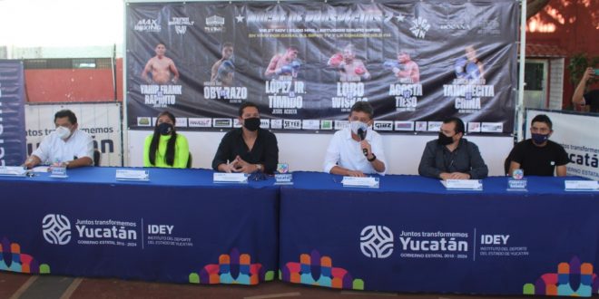 El cartel fue presentado por Mario Abraham Xacur, presidente de Max Boxing; Carlos Sáenz Castillo, director del IDEY, y Santiago Basto Mejía, presidente de la Comisión de Box y Lucha Libre de Mérida, además de los protagonistas del cartel.