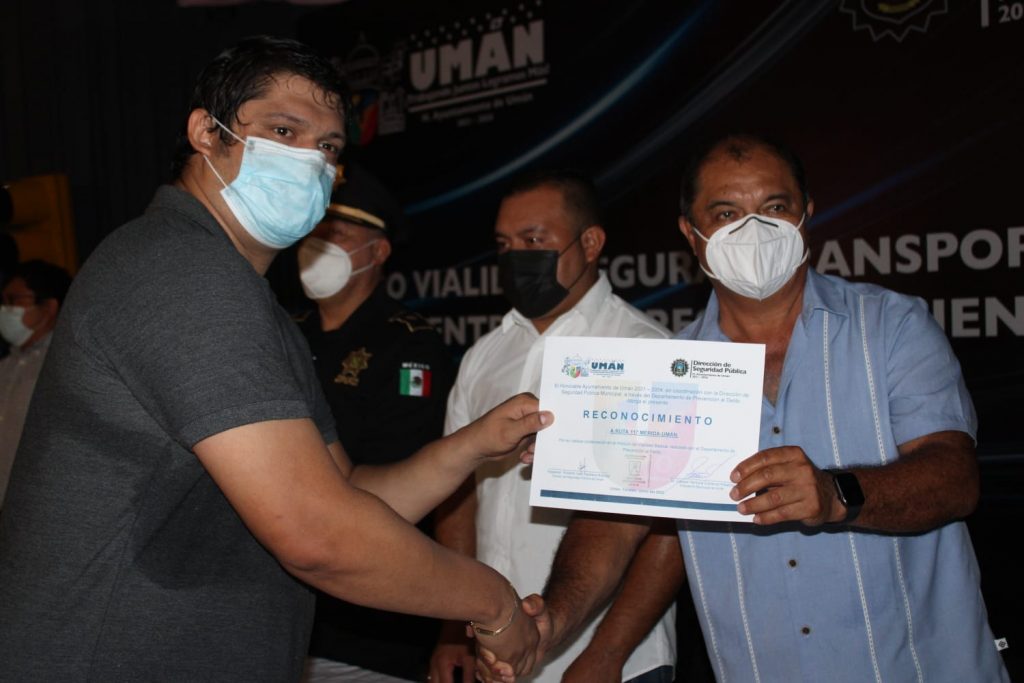 Entregan reconocimiento a 250 servidores del transporte público en Umán por haber concluido el “Curso Vialidad Segura: Transporte Público”.